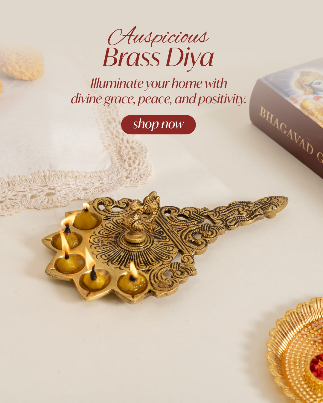 Beautifully handcrafted from premium-quality brass, this set reflects rich Indian heritage and is perfect for festive meals, special occasions, pooja ceremonies, and traditional table décor.
