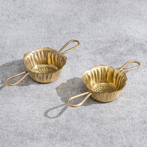 Elevate your tea-making ritual with our Handcrafted Brass Tea Strainer. Expertly crafted from high-quality brass, this strainer is not only functional but also adds a touch of traditional elegance to your kitchen. The fine mesh ensures a smooth, sediment-free cup of tea, while the sturdy brass handle provides a comfortable grip. Perfect for loose leaf teas, herbal infusions, and even coffee, this versatile tool blends heritage with modern convenience. The polished exterior gleams with sophistication, making it a beautiful addition to your kitchen decor. Easy to clean and maintain, simply hand wash with mild soap and dry immediately to preserve its lustrous finish. Whether you're a tea connoisseur or looking for a unique gift, our Handcrafted Brass Tea Strainer is a must-have for any tea lover.