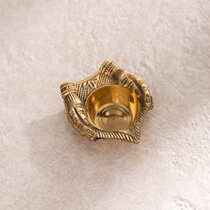 The brass hand shape diya is a symbol of love and solidarity. This posture is considered to be the best one for welcoming a guest to your place. When lit the oil lamp signifies the happiness and light that fills the heart.